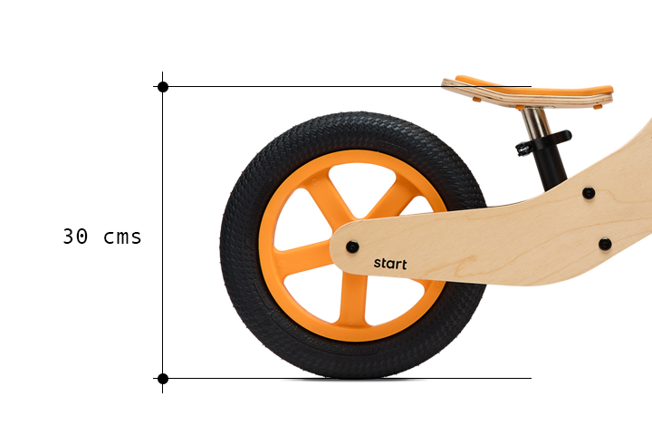 Ajustamos cuidadosamente las proporciones y forma para garantizar que sea fácil para los niños subirse y bajarse de la bicicleta mejorando la altura para llegar a una mínima de asiento de unos impresionantes 30 cms.