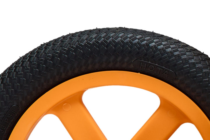No usamos cámaras inflables, sino neumáticos resistentes con un relleno de espuma lo que hace que nunca más tengas que estar preocupado del aire de las ruedas y de los pinchazos. ¡Prácticamente eterno!