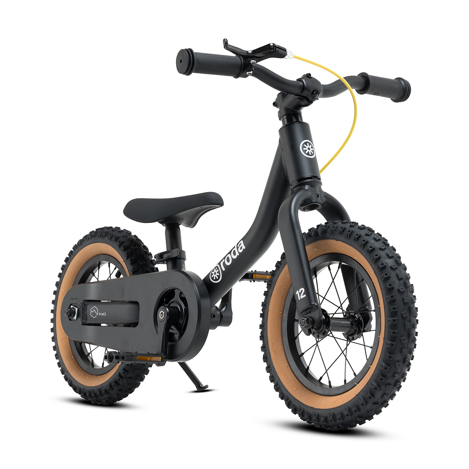 El pack RODA TRAIL 12 Full incluye la Bici TRAIL 12 y el Kit de Pedales, para que tus hijos comiencen con equilibrio y luego den el salto al pedaleo en la misma bicicleta. Con un diseño audaz inspirado en el cerro y componentes preparados para mayores exigencias, es la compañera ideal para vivir aventuras desde los 2 años.
